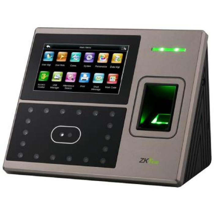 ZKSoftware 4.3 inch touch screen Fingerprint & Face Identification Time Attendance & Access Control Terminals, 1200 face templates, 2000 fingerprints, 100,000 transactions Logs, High Resolution Infrared Camera, TCP/IP, RS232/485, USB Port, 125kHz RFID proThe uFace800 dual-mode, biometric time and attendance terminal includes both a camera for facial recognition and a fingerprint capture device for versatile and secure biometric applications.